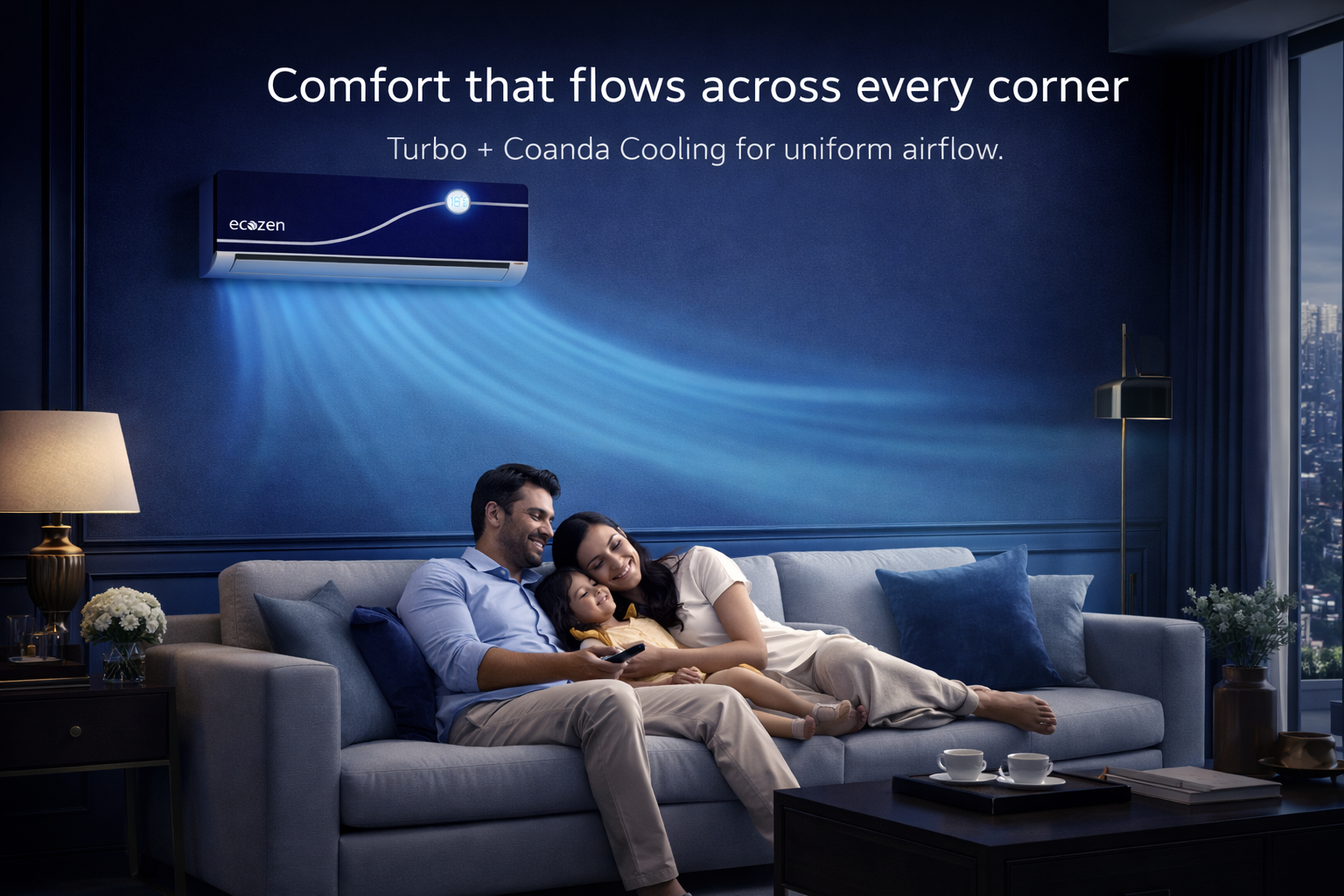 Ecozen Smart AC delivers powerful cooling with energy-efficient performance. Designed for modern homes, it combines smart controls, reliable Ecozen engineering, and dependable comfort for everyday living.